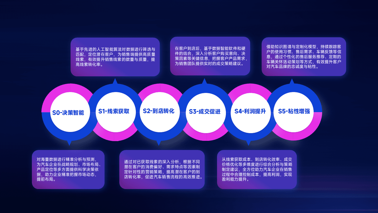 通过拓宽潜在客户来源、、、、优化线索分配并提高到店转化率,,,以增强销售效率。。。同时,,,,利用线索数据不断优化分析模型,,,,有效提升转化率,,扩大营销影响力。。
